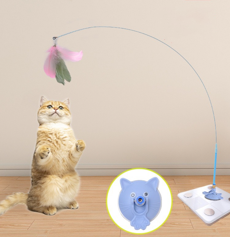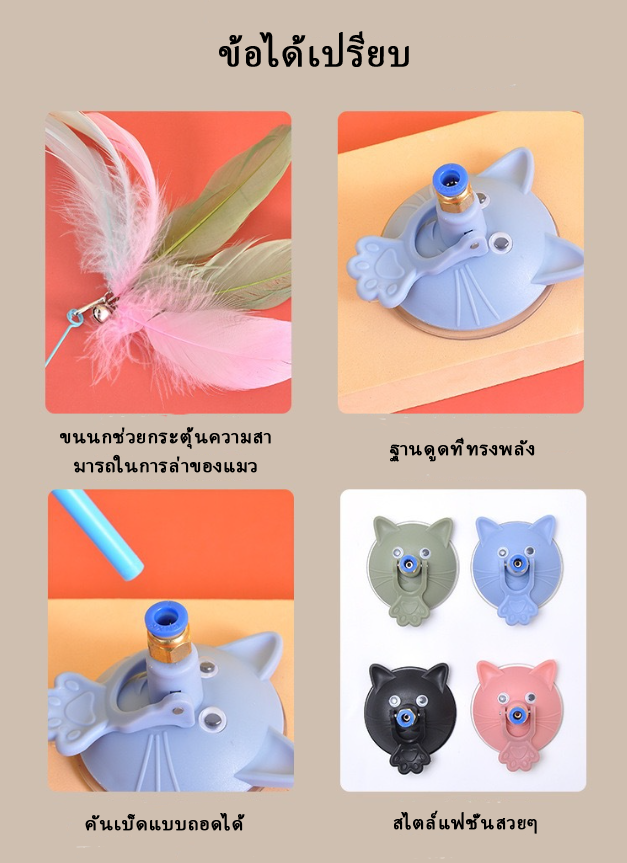ของเล่นแท่งไม้ล่อแมวดูดสูญญากาศ - แถมฟรีขนนกทดแทน 3 ชิ้น