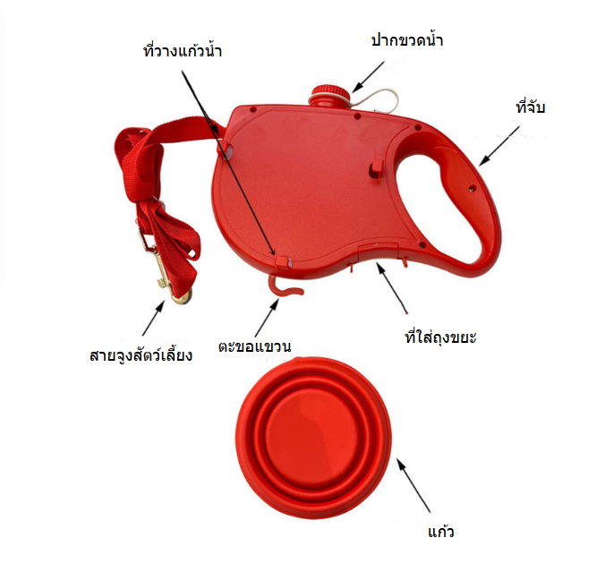 สายจูงสัตว์เลี้ยงแบบอเนกประสงค์พร้อมขวดน้ำในตัว